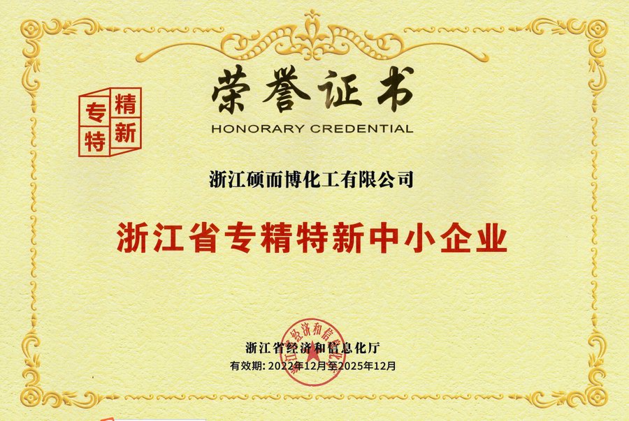 浙江碩而博化工有限公司創建于2007年,公司注冊資本4600萬元,總資產2億元,目前在崗員工120余人。公司廠區占地約40畝,位于浙江省衢州市智造新城產業園巨化廠二北路6號,物流大道南側,近鄰杭金衢高速、杭甬高速,交通十分便利。